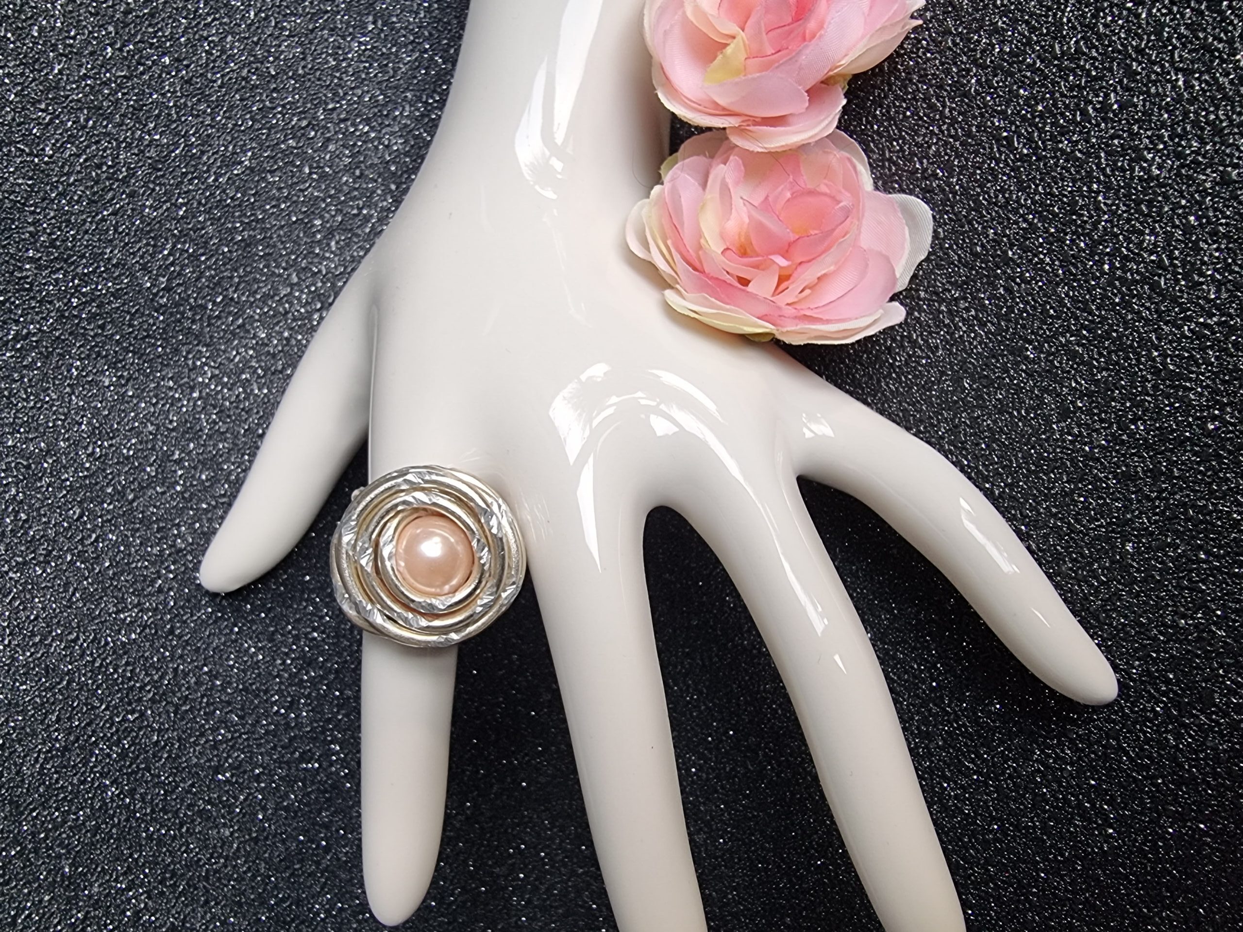 Ring Celina in Größe 17, Champagner Diamand mit Perle in hellrosa. Durchmesser ca. 2,3 cm
