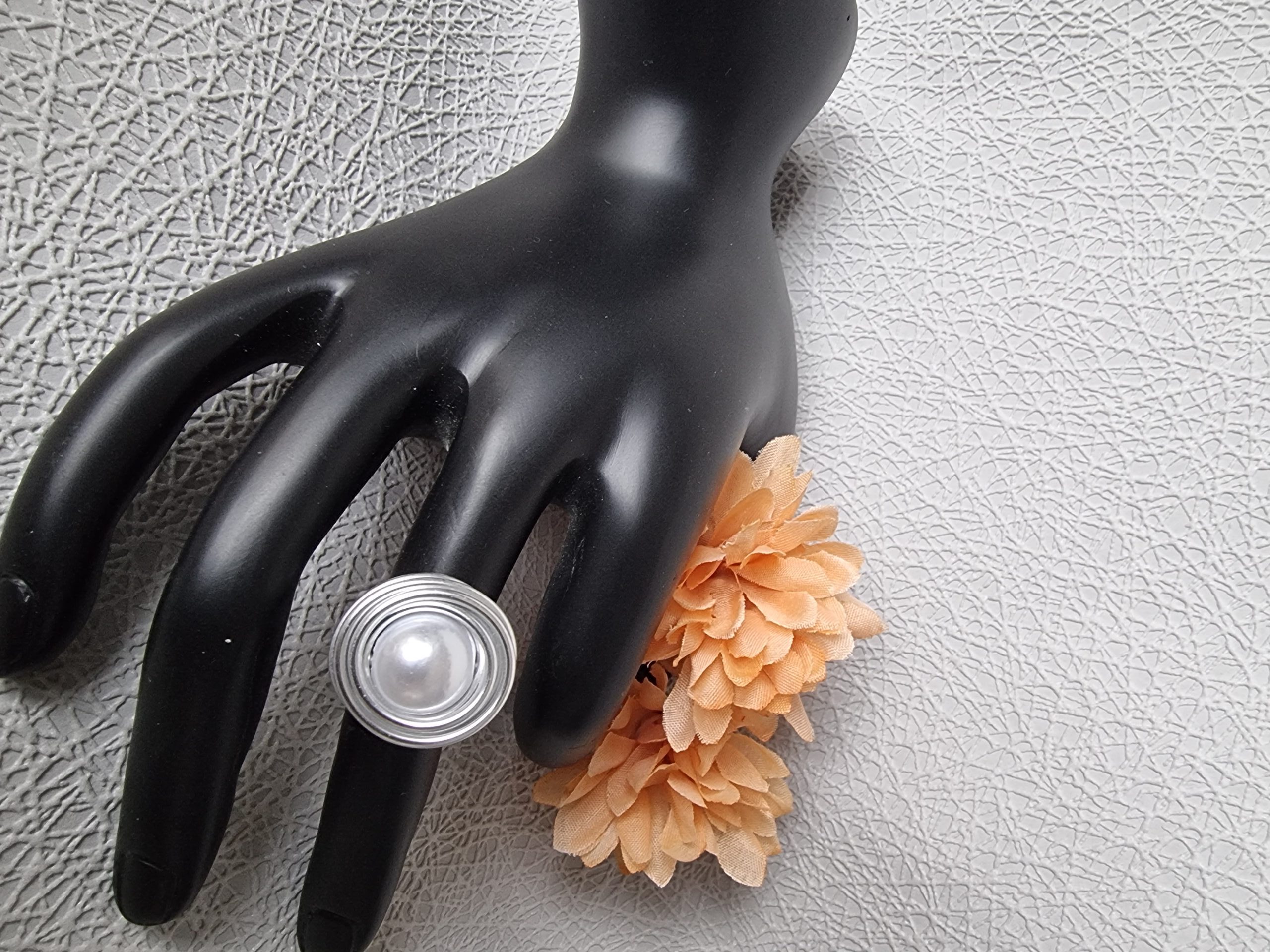 Ring Celina in silber mit weißer Wachsperle, Größe 17. Durchmesser ca. 2 cm