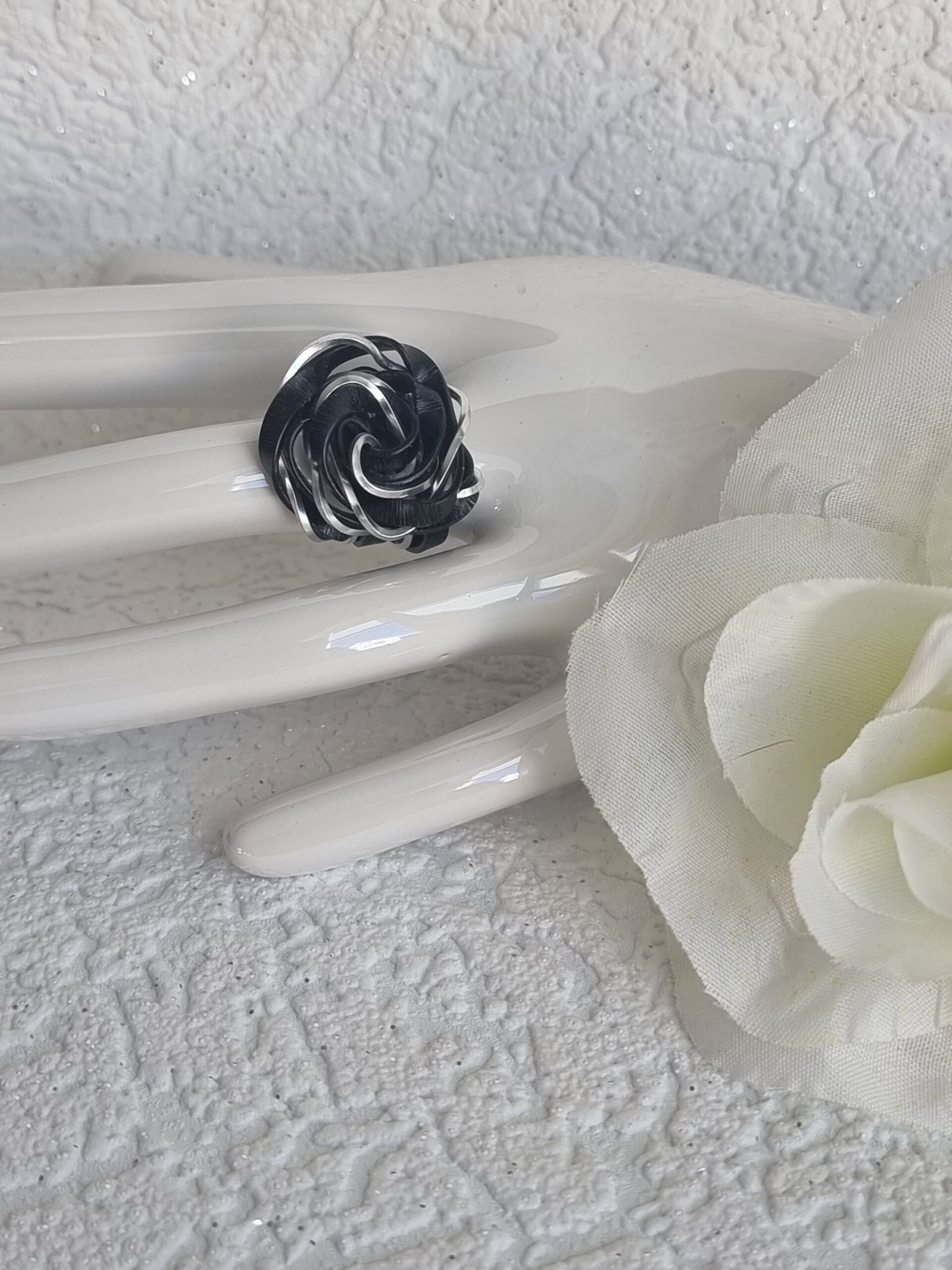 Ring Rose in schwarz – silber. Schwarzer Flachdraht kombiniert mit Square-Wire in silber. Durchmesser ca. 2,5 cm